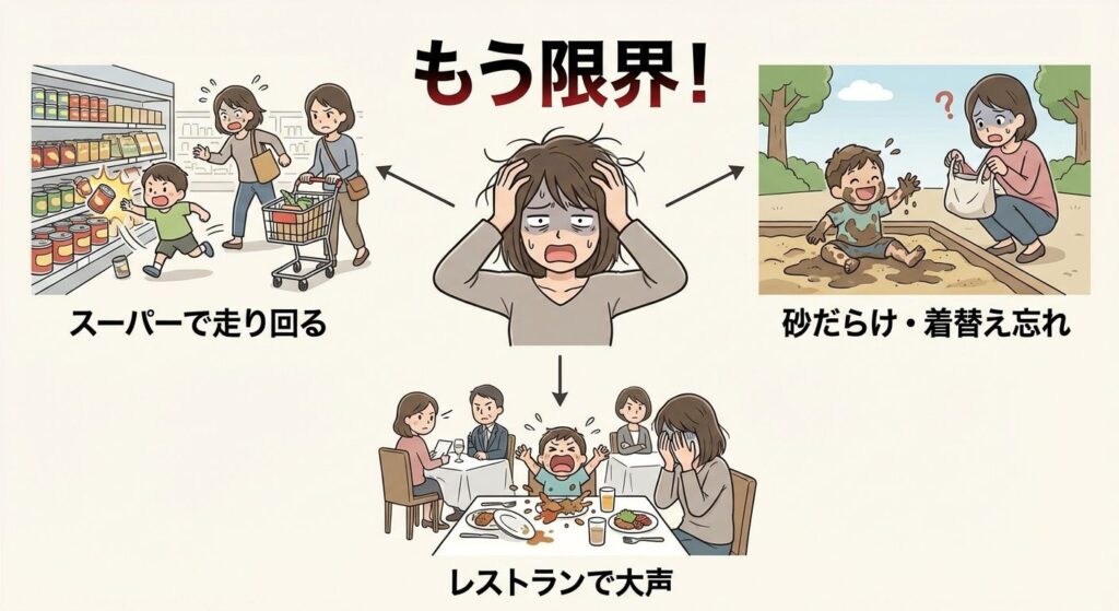 「また今日もスーパーで走り回って、他のお客さんに迷惑をかけてしまった」