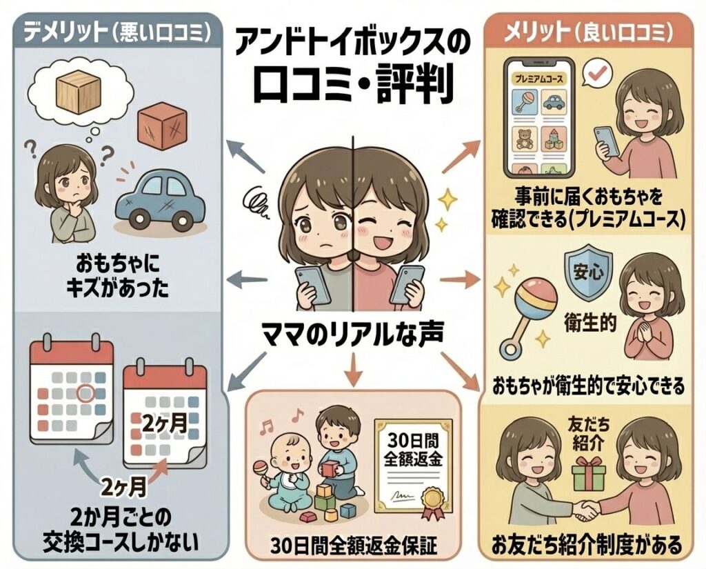 アンドトイボックスのネット上の口コミ、メリット・デメリット、おすすめする人を振り返りましょう。
