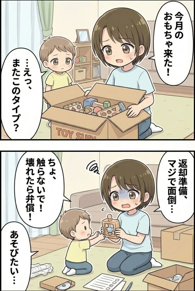 1か月おきのおもちゃサイクルのデメリットは梱包・返送作業を1か月おきにしなければならないことです。